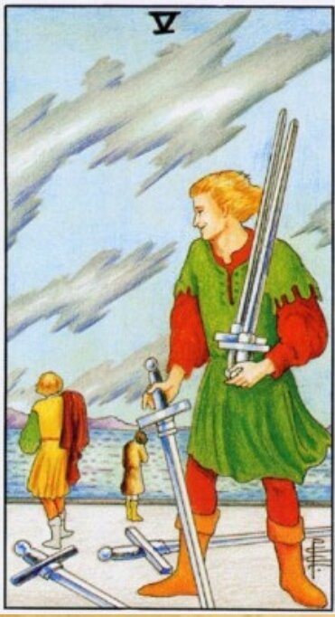 Карта дня 5 мечей; Поражение,проигрыш, неудачи, позор, оскорбление,унижение.