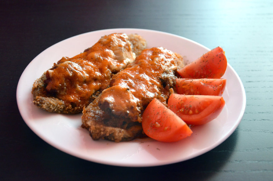 6. Подавать запеченным с соусом и помидорами.