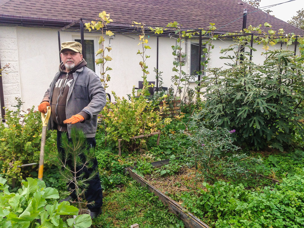 Посадили сосну напротив открытой террасы, где мы по утрам пьем кофе. За год деревцо выросло примерно на 30 см. Когда сажали, было мне по пояс (снимок на обложке), а теперь стало по грудь.
