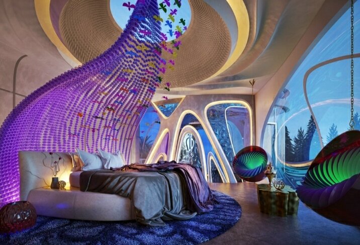 Для оформления интерьера в стиле бионики могут применяться как новейшие материалы: смарт-стекло, мдф-панели, а также полимерные материалы (гибкий камень, древесный композит, жидкие обои), так и привычные: дерево, металл, текстиль, кожа, керамика. Приветствуются зеркальные, полупрозрачные и глянцевые поверхности.