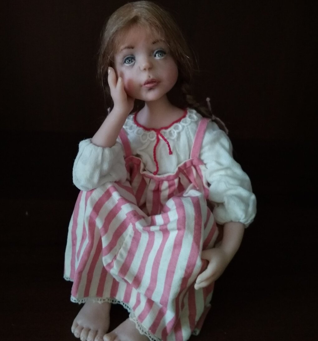 Лет 13 назад дочь показала мне в одном журнале фотографии кукол из фарфора, изготовленных ее преподавателем из художественной школы Ольгой Александровной Бакановой. Мне эти работы так понравились, что возникло желание научиться создавать такую красоту. Тем более дети выросли, появилось время, которое хотелось посвятить себе. Стала изучать вопрос, из чего и как кукол делают, в итоге решила остановиться на запекаемом пластике. Полгода по книгам постигала тонкости процесса, сделала несколько куколок, поняла, что без учителя не обойтись. Поехала в Москву, нашла там мастера, который меня и научил азам. С тех пор и творю.