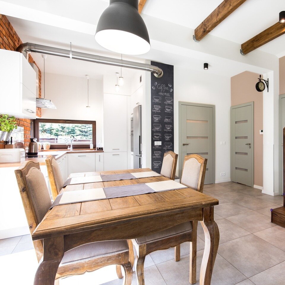 Если конфигурация комнаты удлинённая, можно поочерёдно повесить несколько свисающих плафонов. Вам повезло с площадью? Это даёт прекрасную возможность выделить обеденную группу при помощи светильников, даже в том случае, если она располагается не в центре кухни.