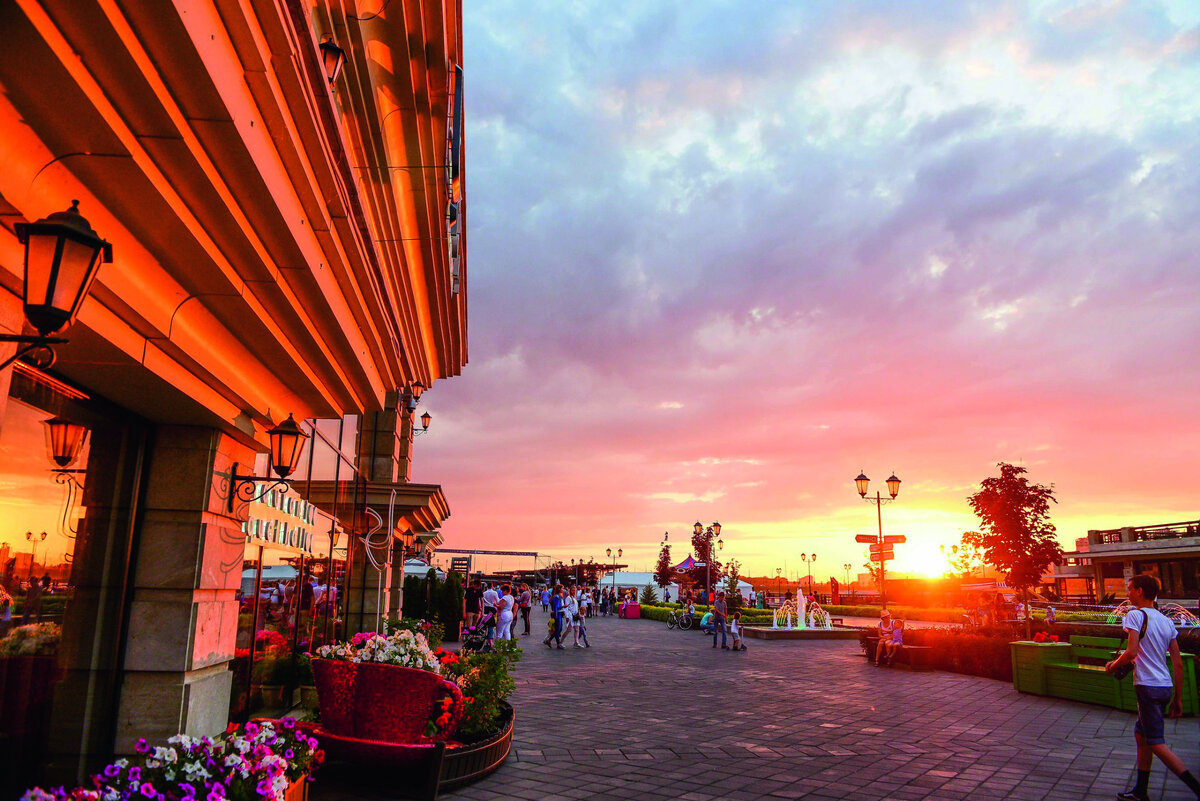 Невозможно приехать в Казань и не побывать на Кремлевской набережной. Это не просто прогулочная зона, а главное место притяжения и жителей города, и туристов. Вся набережная — сплошное раздолье для инстраграмщиков: фонтаны в окружении цветущих клумб, необычные скульптуры, удивительные лавочки (лавочка-пианино, лавочка-бабочка, лавочка «Познакомлюсь» — все не перечислить), сверкающий навес из гирлянд. На аллее искусств играют уличные музыканты, проводятся выставки и арт-акции. Аллея семьи понравится малышам и их родителям. Здесь качели, игры на асфальте, детская библиотека и даже ясли. На молодежной аллее устраиваются соревнования, здесь можно поиграть в напольные шахматы, шашки, твистер и морской бой.