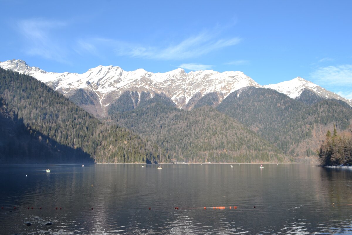 Экскурсия по Абхазии 7 января 2021. Золотое кольцо Абхазии зимой. Часть 3 Погуляв по Юпшарскому каньону направились к озеру Рица, без заезда на смотровую площадку в горах, где открывается потрясающий вид сверху на озеро, как это было летом 2019 года. Дорога к озеру была очень извилистой и из окна автобуса видно было огромный обрыв и было досадно, что экскурсионный автобус там не останавливается, т.к. там можно было бы сделать потрясающие фотографии. К озеру Рица мы подъехали в районе 2 часов дня и уже заметно проголодались и первое, что начали делать - это пошли пообедать, благо возле озера, наверно, с десяток кафе, где можно поесть, и насколько понял, каждая экскурсионная компания имеет какой-то договор с одной из кафешек, т.к. экскурсовод советовал только определенную кафешку и летом 2019 катаясь с той же компанией советовали туже кафешку. Хорошо пообедав пошли гулять вдоль озера и фотографировать всю эту красоту. Конечно, ожидал, что снега будет гораздо больше, но не судьба. Погуляв