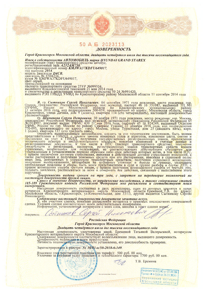 Цена на перевод доверенностей