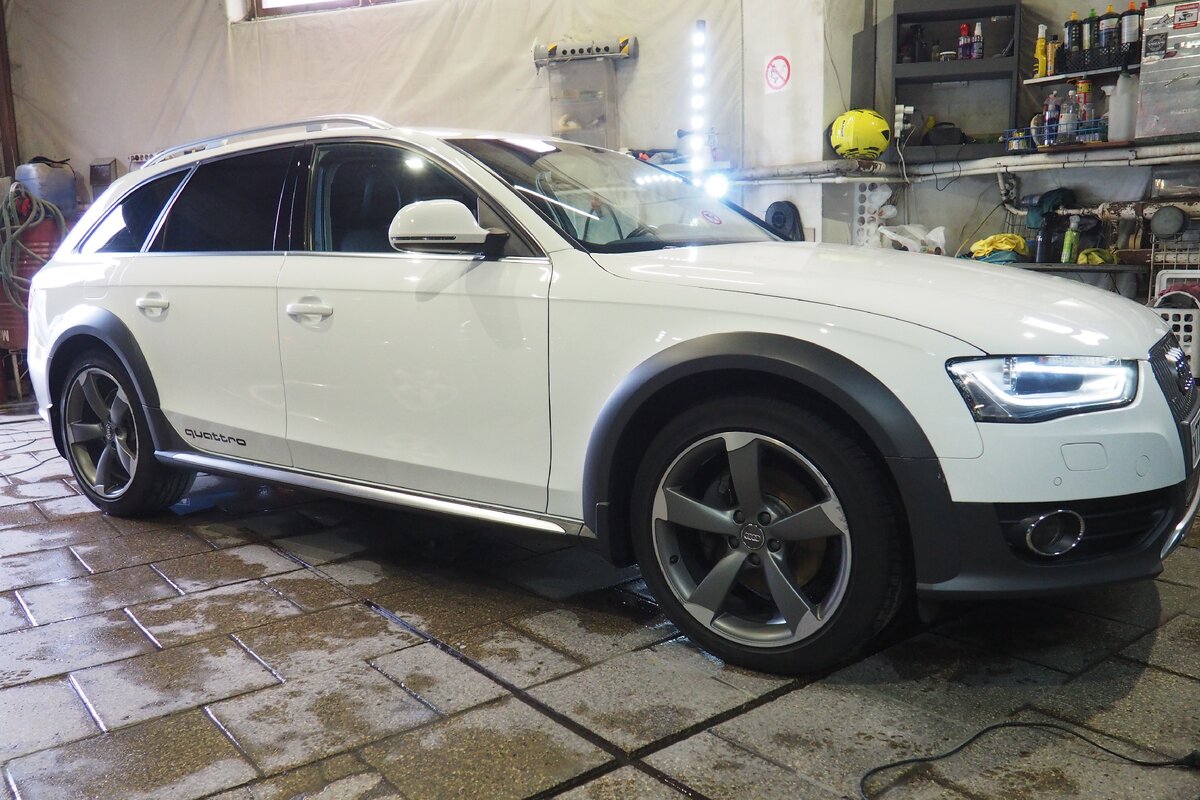 Снова в нашей мастерской шумно и весело. В работе очередной автомобиль. На сей раз это Audi А4 белого цвета.