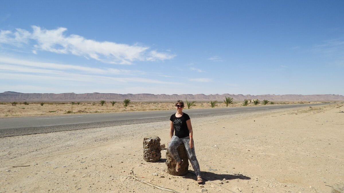 Продолжим нашу экскурсию в Сахару… Мы остановились у придорожного кафе. Все пошли есть лепешки, а мы стали осматривать окрестности. И когда уже народ собирался обратно в автобус нам вдруг тоже захотелось ее попробовать. Я не скажу, что вкус этого тунисского фастфуда был каким-то особенным, но для голодных ртов показалось вполне даже ничего 🙂