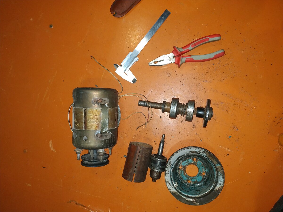 - Электродвигатель от старой стиральной машинки со шкивом