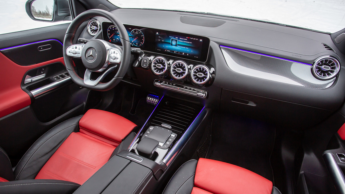 Что-что, а поражать интерьеры современных Мерседесов научились прямо с порога. GLA — одна из самых компактных и доступных моделей бренда, но даже здесь не поскупились на дизайн и плюшки, как у старших моделей. Речь, например, о крутейшей контурной подсветке, элементы которой есть даже в дефлекторах! В тёмное время салон вседорожника смотрится очень эффектно.