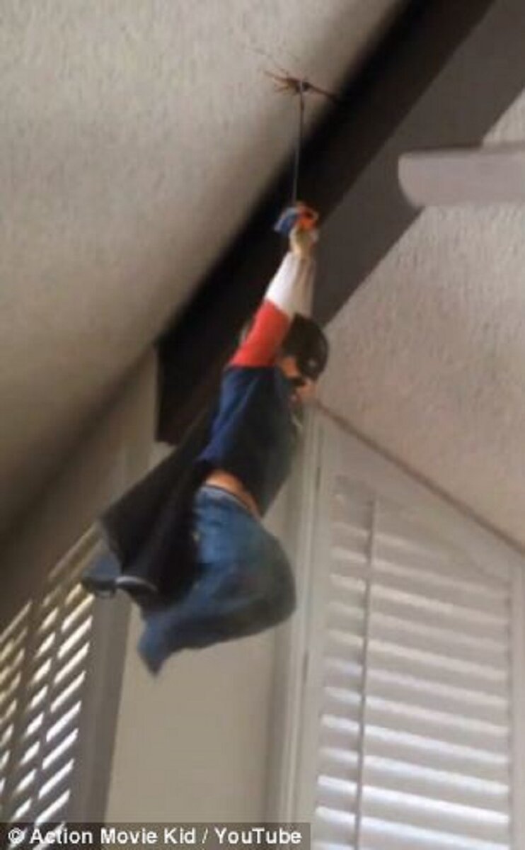 То есть, папа постарался превратить его в супер-героя, а именно человеком-пауком. Для этого он использовал специальный детский костюм.