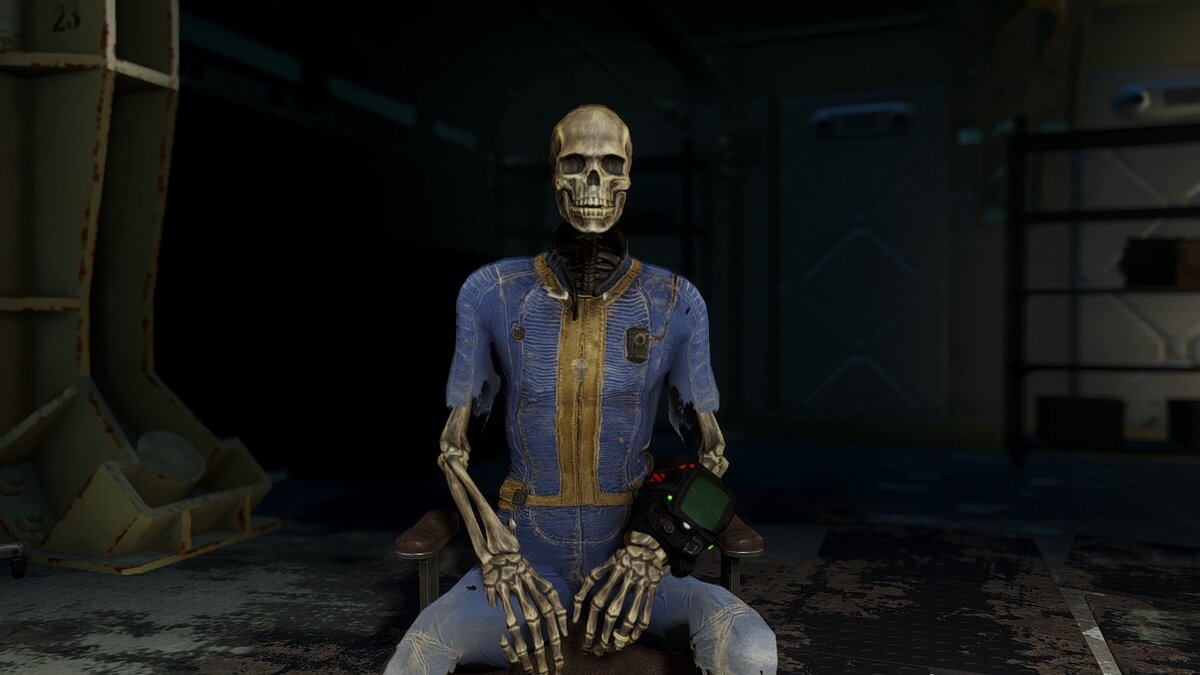 Бывшие наркоманы сошли с ума, когда увидели горы препаратов – они вернулись к прежним привычкам, начался хаос и насилие. Все погибли от передоза или перестрелок, судя по скелетам в комбинезонах. На удивление, когда главный герой нашел убежище, в нем еще были «психо», «винт» и другие препараты.
