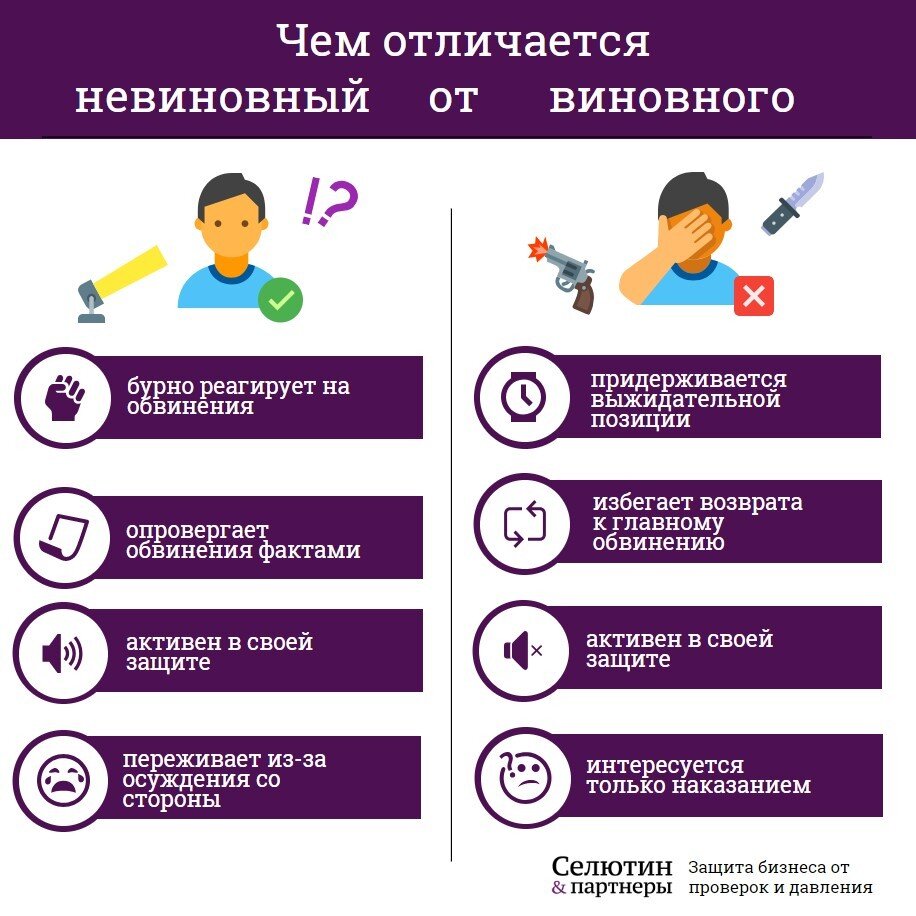 Кабинет, стол, лампа — вас допрашивает следователь. Вы стараетесь сохранить спокойствие, но у вас не очень получается. Адреналин зашкаливает. "Может быть он что-то знает?" - промелькнула мысль в голове. Только без паники! Все следователи знают, как определить виновного от невиновного.