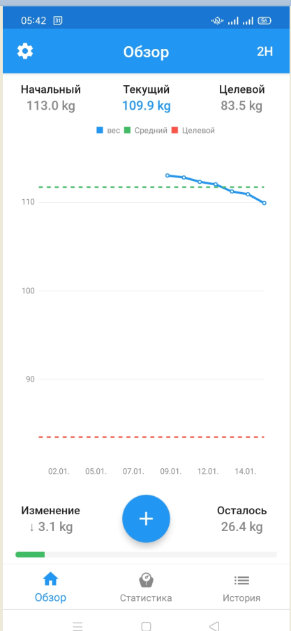 Сегодня попил много воды, поэтому завтра думаю вес будет побольше, но это и нормально, нельзя же вечно скидывать!