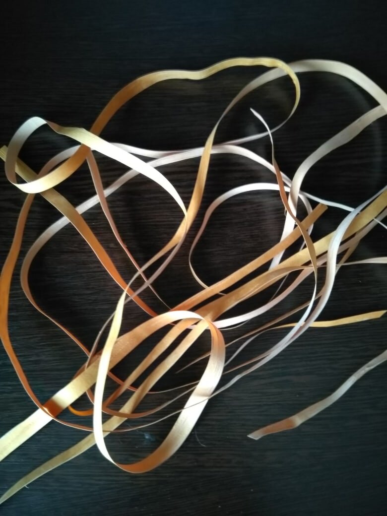 А давайте не будем скучать, а сплетем браслетик.. Из тонкой бересты (ее можно взять даже с полена) нарезаем полоски шириной 1см.