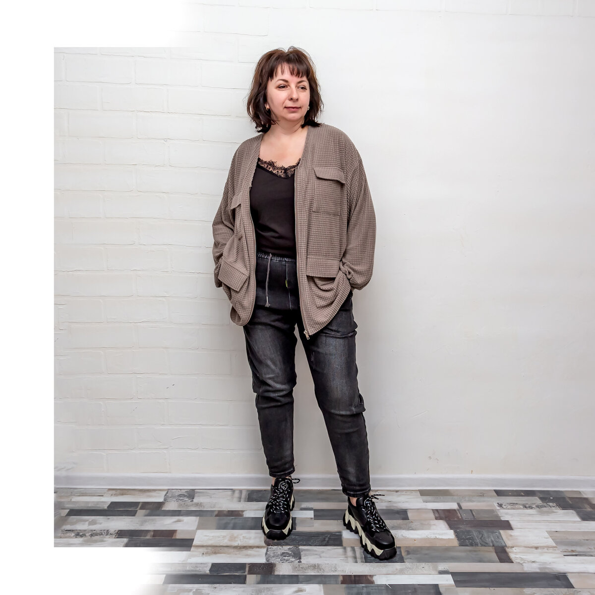 На мои параметры 104-94-114 кофта села мега оверсайз, смело можно было брать и на размер меньше, все равно смотрелась бы свободно. Длина рукава на рост 170см хорошая.