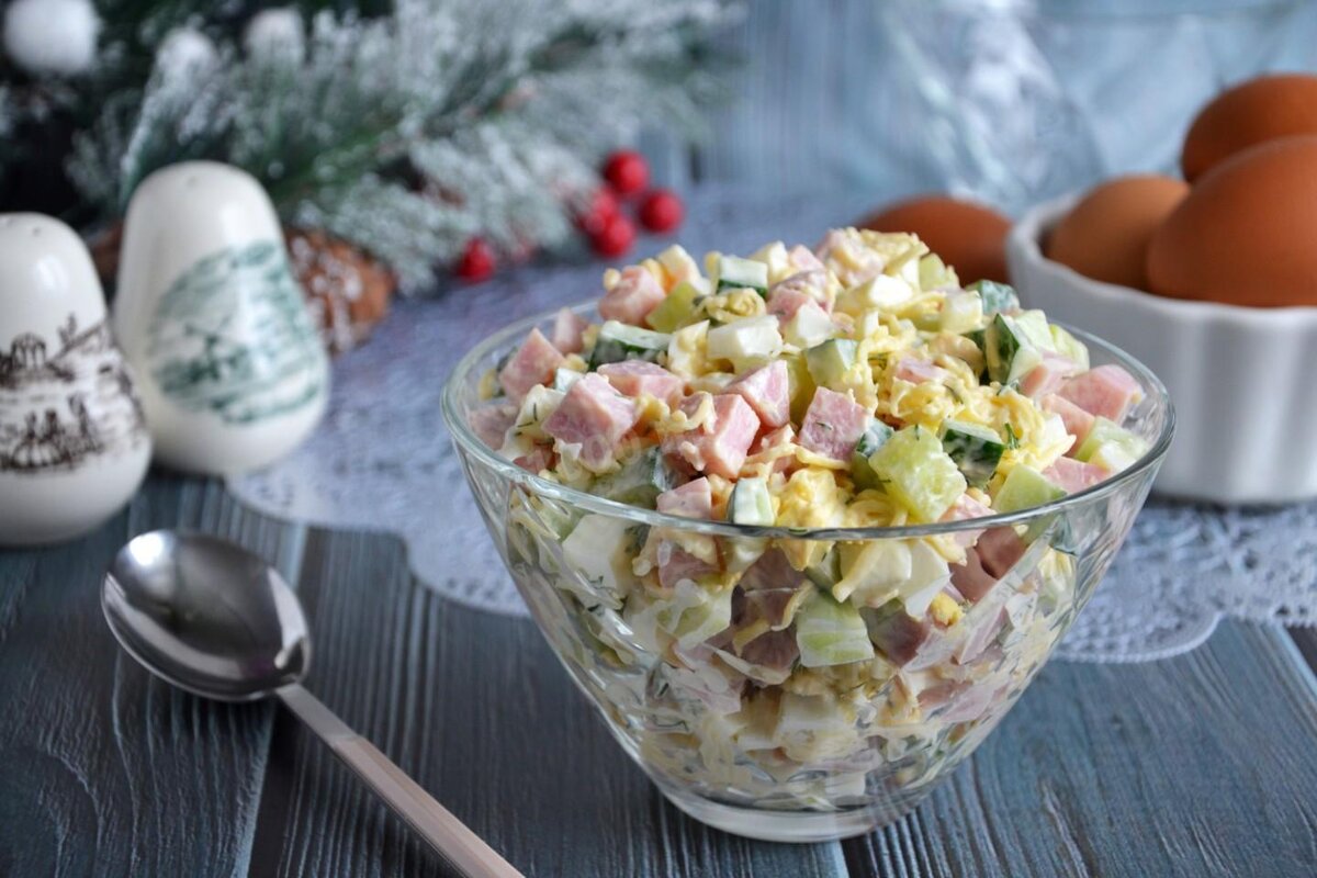 ШАГ 5 - Залейте салат сметаной и еще раз перемешайте.