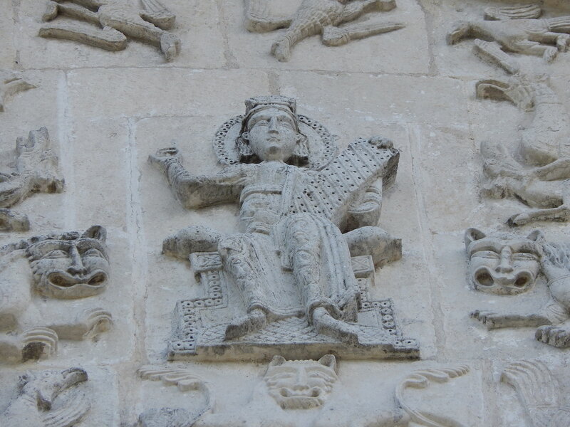 Старинных икон 15-16 вв. с изображение Софии Премудрости великое множество. Однако, они мало известны и едва ли сегодня можно увидеть их в храмах. Тем не менее, любой желающий сегодня может просмотреть их, набрав в поисковике «Икона Софии Премудрости Божией». Интересно, что это достаточно поздняя иконография, не ранее XIV века. Что же такое случилось, что после 400 лет христианства на Руси необходимо стало разъяснять пастве значение образа Софии. 400 лет уже, как стоят в древнейших городах величественные соборы, посвященные ей, уже закончили свой земной путь такие подвижники как Антоний Печерский, Алексий Московский, Сергий Радонежский и т. д.. Уже создали свои шедевры такие мастера как Андрей Рублев и Феофан Грек. Что может быть еще не понятно народу? Что может он еще не знать о Премудрости Божией? Посмотрим еще на эту икону и сравним ее с барельефом древнейшего Дмитриевского собора города Владимира.