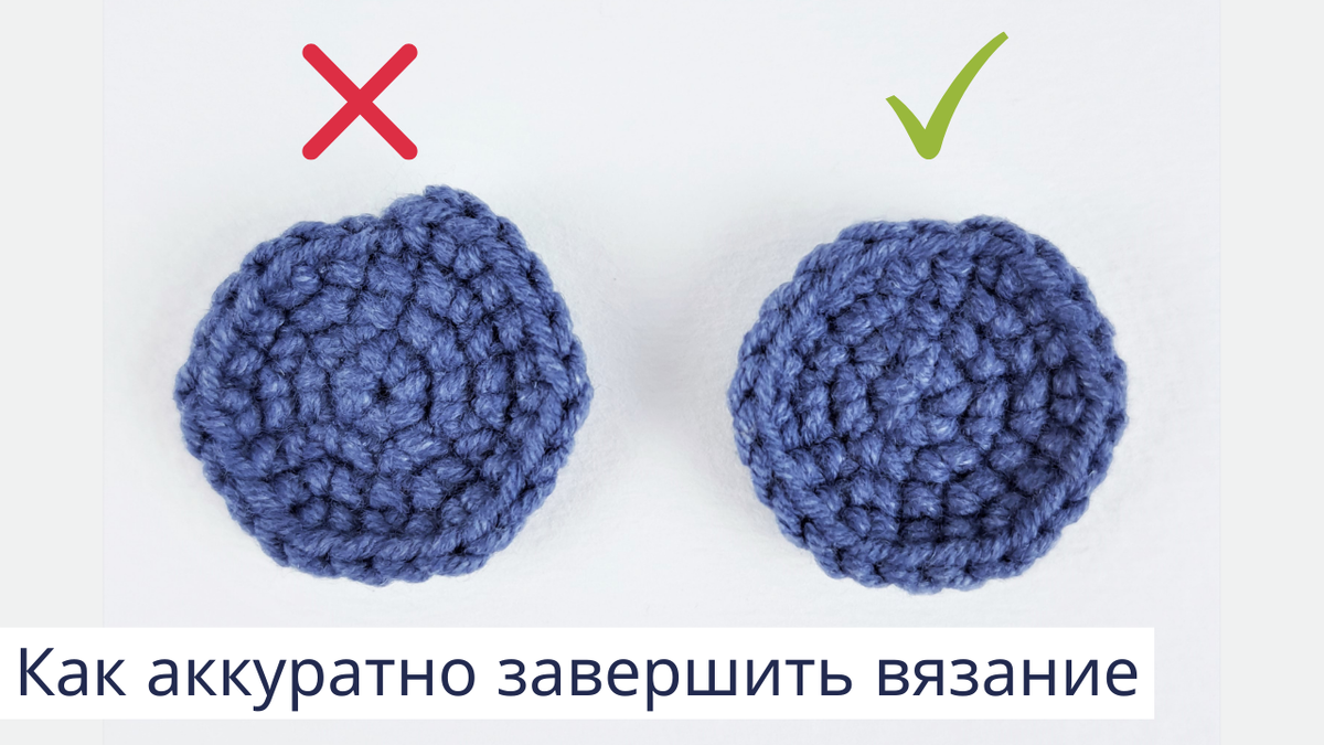 Обычно в конце вязания мы делаем соединительный столбик и закрепляем нить, но в таком случае результат получается не идеальным.