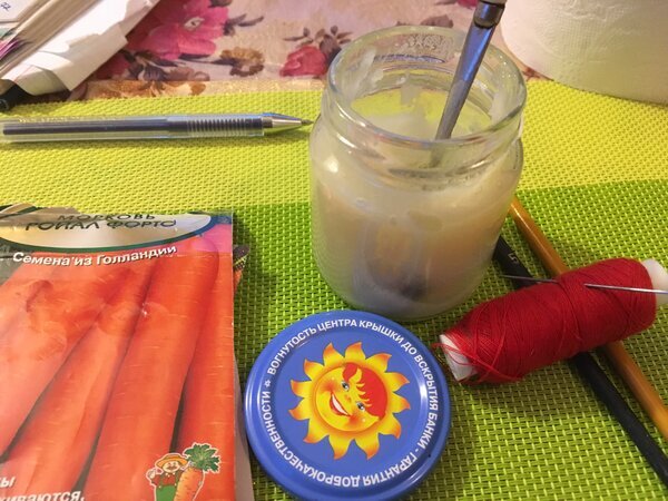 Итак, про наклеивание семян моркови я расскажу отдельно, а сначала нужно сварить клей. И займёт это у меня всего пару минут.