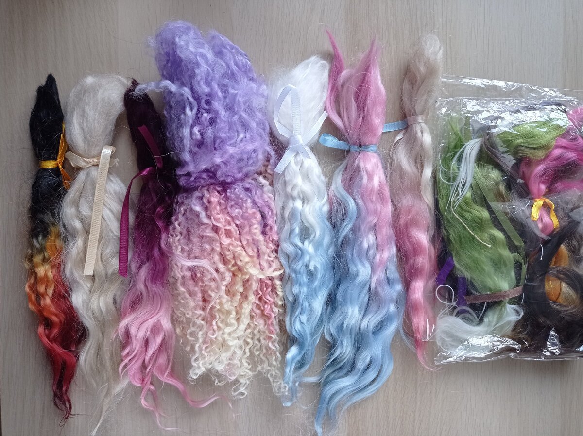 Первое время я покупала локоны у woolhobby в инстаграме. На куколку, в среднем, уходит около 23-25 гр локонов, покупаю по 30, чтобы был запас на всякий случай. Стоимость за 10 гр от 200 рублей за однотонное окрашивание, 220-240 за разноцветное. То есть, на одну куколку требуется волос на 600-720 рублей. Дорого? Очень!