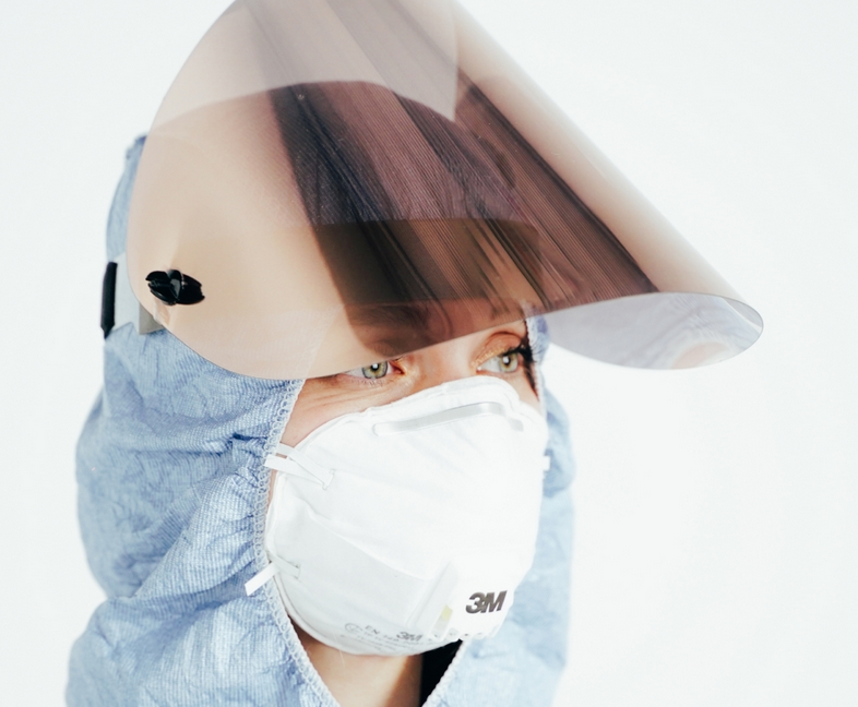 С этой задачей отлично справляется защитный экран для лица при коронавирусе. Он представляет собой щиток из материала ПЭТ с налобным ободом и фиксаторами. Конечно, при длительном ношении возникает