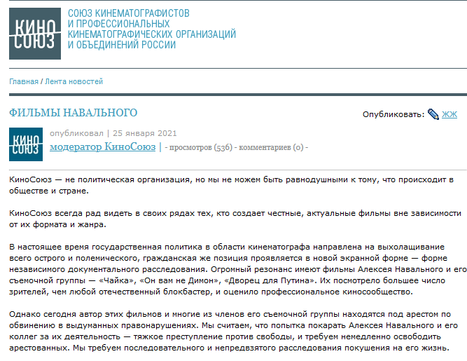 Наконец я узнала о том, каким должно быть настоящее кино, из уст самих мастеров культуры. Спасибо, что называется, и поясной поклон. Объяснили. А мы-то, ватники, простой примитивный народ, всё гадаем – почему, как ни включишь вечерком телевизор в надежде увидеть доброе и вечное, посеянное вами и воплощенное в художественных образах, так неделю потом срыгиваешь. И думаешь – Господи, вот уйдут последние колоссы, так и останемся мы до конца дней с левиафанами, зулейхами и доярками, решающими непосильную задачу «как выйти замуж за миллионера»? Похоже, так и будет. Смотрите, что нам предлагают принять за образцы жупелы кинокультуры во всех ее проявлениях. Список подписантов: Спасибо Форбсу, который рассказал мне об этом письме. Миллиардеры с вами, господа! *********** Мне интересно, каким участком мозга смотрят белые пальто сии произведения искусства? Тем же, что и многочисленные видеоролики, снятые бригадой Навального в стиле «смотрите, какую клевую помаду я вчера купила, а вот эта – н