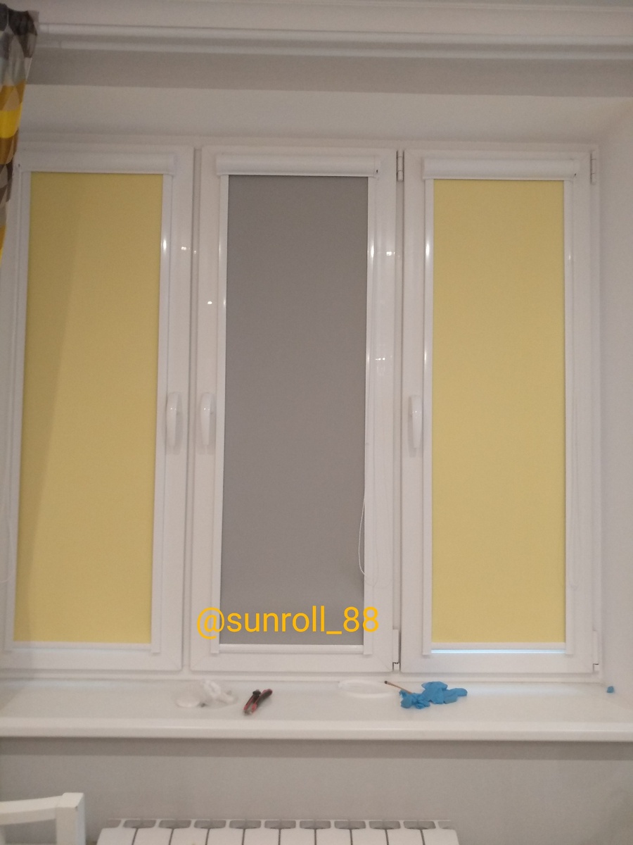 Всем привет! По моему очень оригинально получилась наша работа на рулонно-кассетные шторы Уни на створки. Кстати недавно прочитала, что журнал Pantone на 2021 год самыми модными цветами выбрал именно серый и желтый, видимо Заказчика тоже в тренде))) И получилось довольно таки не плохое сочетание этих двух цветов. На самом деле, изначально планировалось всё только в желтом цвете, но так как это