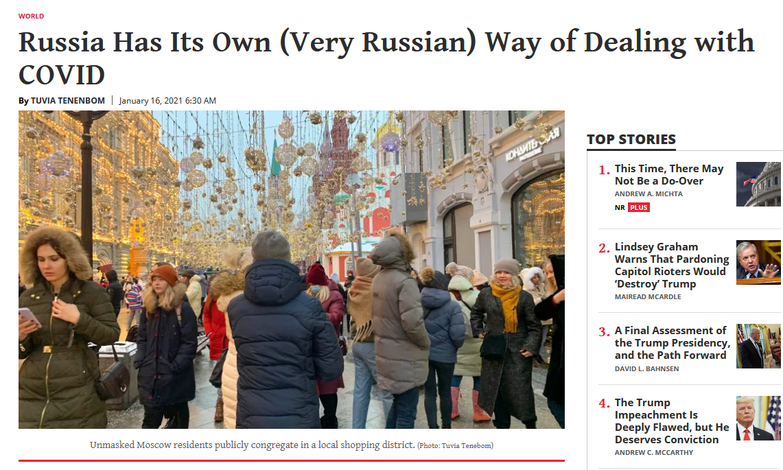 Не я одна люблю почитать, что пишут о моей стране иностранцы. Недавно в американском журнале «National review» появилась забавная заметка «У России есть свой (очень русский) способ борьбы с ковидом».