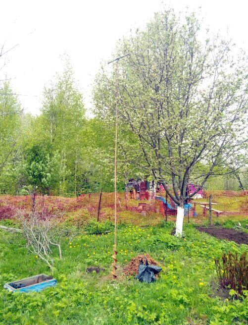 Старые трубы и высота яблони закончились одновременно, пришло время канатно-ударного метода. Надо сказать, это сильно медленный метод! Его суть- кинуть в дыру в земле трубу так, чтобы она воткнулась в дно и в ней "залип" кусок породы. Вытащить, выковырять и снова кинуть! В планах у меня за три года справится... :)