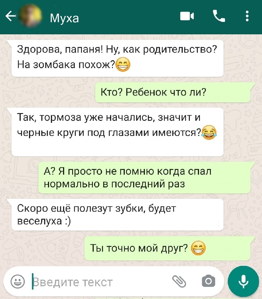 Я попытался собрать несколько переписок с друзьями, после того, как у нас родился сын. Эти переписки мне показались смешными и теплыми, и их хочется запомнить надолго.