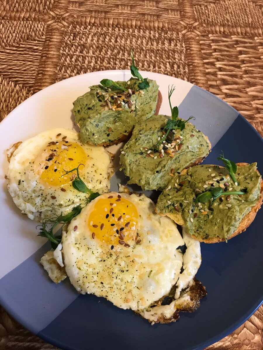 Такой необычно-зелёный бутерброд отлично зайдёт детям.