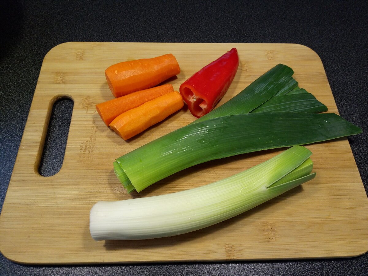 Берём морковь, красный перец, лук-порей, по 1 шт⬇️⬇️⬇️