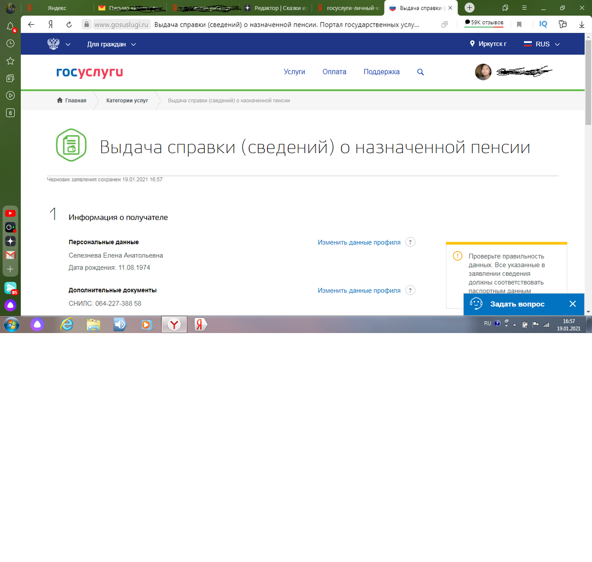Вот сегодня вошла на сайт госуслуги стало интересно, что же там происходит с моей пенсией?