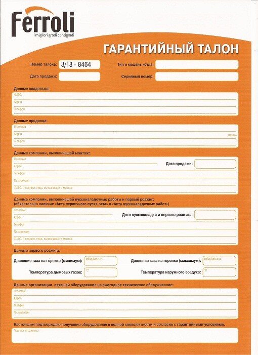 Поэтому ,проверяем правильно ли заполнены документы (гарантийный талон, серийный номер, печать организации продавшей котел с датой продажи).