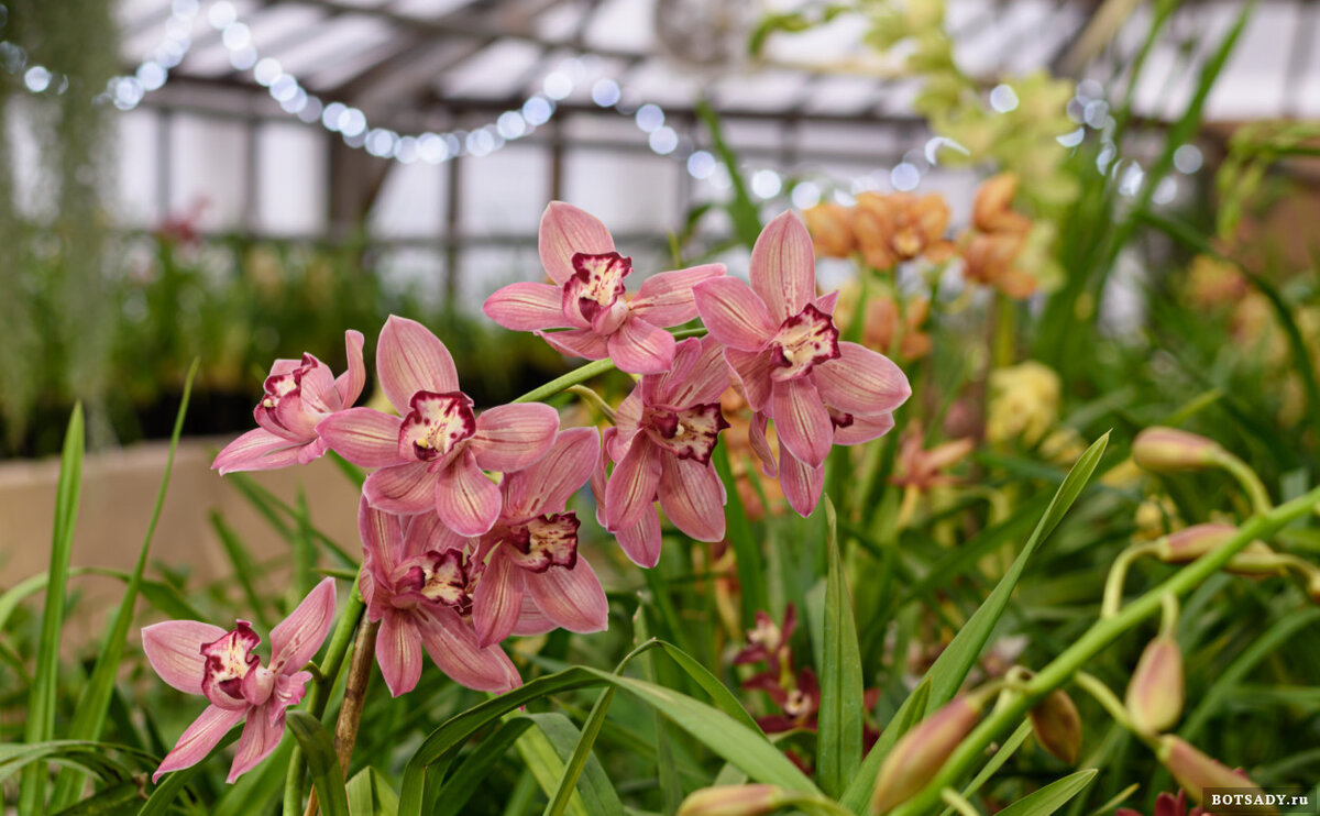 На время цветения орхидей в оранжерее временно открыты фонды. Больше всего внимания к себе привлекают орхидеи рода Цимбидиум (Cymbídium), всего в нём около 60 видов различных окрасок. Их родина — тропики и субтропики Юго-Восточной Азии, Австралии и островов Тихого океана. Конфуций считал цимбидиумы королями ароматов, а культивировать их начали ещё две тысячи лет назад.