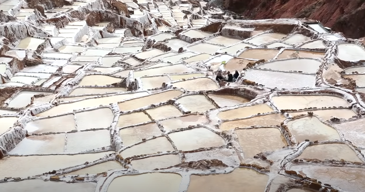 Вот террас насчитывается более 3000 на площади 1км². Они располагаются рядами на склоне. В них добывают соль, простым, но необычным способом. Индейцы, жившие тут, обнаружили, что в этом месте очень соленая вода.