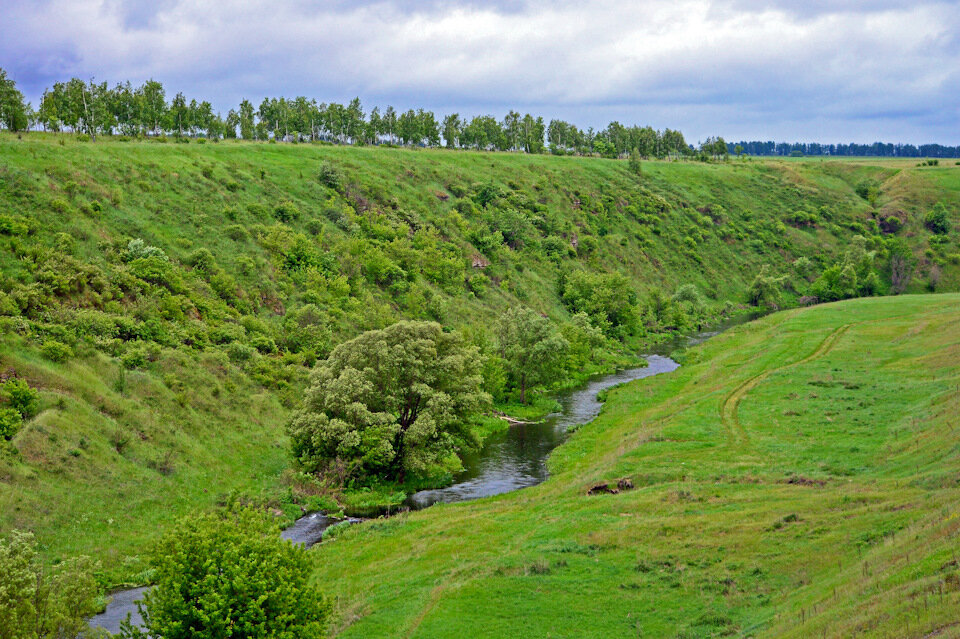 Мы отправляемся по заповедным местам Черноземья. Но прежде, чем доехать до Галичьей Горы, самого маленького и необычного заповедника, мы останавливаемся в хоть и не заповедном, но вполне претендующей на такое звание месте неподалеку от города Ельца. Это урочище Прасека близ села Аргамач–Пальна, ландшафтно–биологический памятник природы. Река Паленка в этом месте образует крутую излучину, берега очень крутые, больше похожие на каньон горной реки.