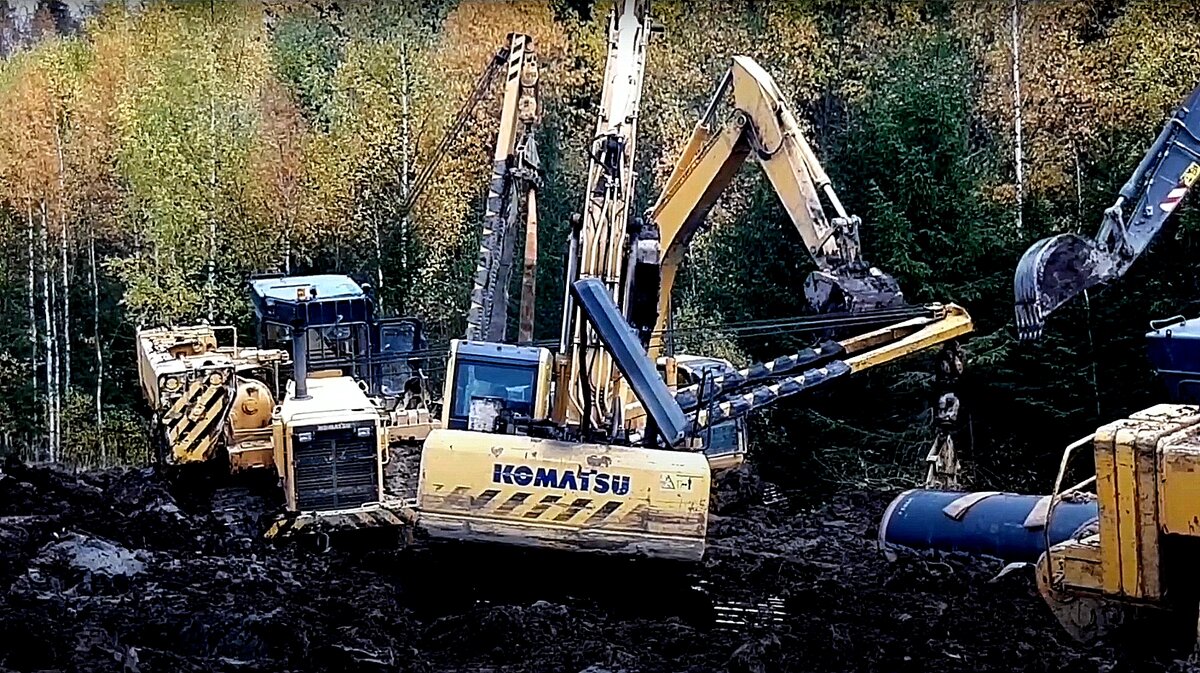 Мы там КАМАЗ-вахтовку пополам порвали, когда из грязи тащили экскаватором. Сутки. С несчастного Урала, волочившего трубу, два водителя уволились от такой работы. Вокруг лес на много километров. Другой дороги нет.