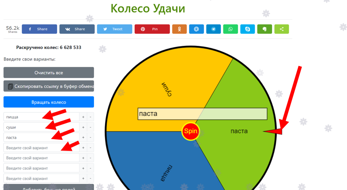 Просто щелкните круговое колесо, оно начнет вращаться в течение нескольких секунд. В результате случайным образом выбирается одно из имен в списке.Мы также предоставляем удобные сочетания клавиш, если вы используете рабочий стол.