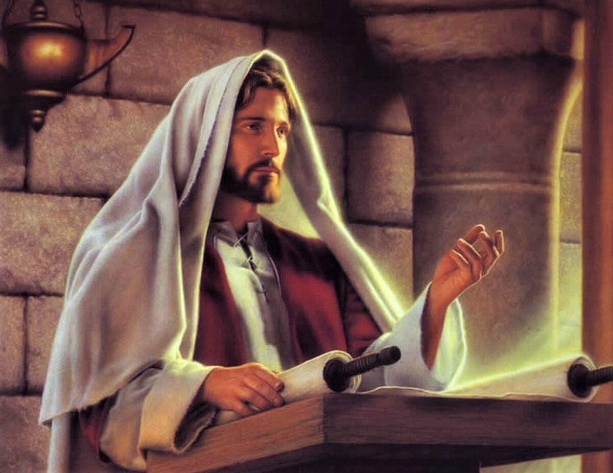 "Однажды Иисус пришел в Назарет, в город, где Он вырос, и в субботу, как обычно, Он отправился в синагогу. Там Иисус встал, чтобы читать."