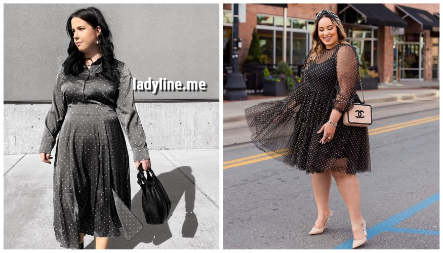 Стилисты также обращают внимание дам plussize на модели платьев, выполненные из шелка. Платье миди с плиссированной юбкой, модель в бельевом стиле, а также платье мини длины с пышными рукавами и глубоким V образным вырезом добавят элегантности дамам с аппетитными формами.