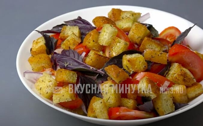 Как приготовить Салат из хлеба, помидоров и базилика рецепт пошагово