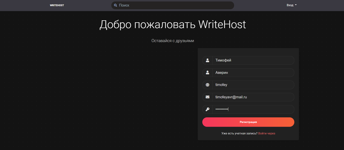 Хочу рассказать про новую соц сеть которая называется (writehost.ru). Хоть и поисковая система и не отображает корректно запрос но на мой взгляд это не плохая социальная сеть которая предоставляет безграничное число акций которые позволяют рекламировать свою продукцию абсолютно бесплатно. Каждый месяц они разыгрывают 10 000 рублей на счет рекламной компании на рекламу. Кстати они набирают команду