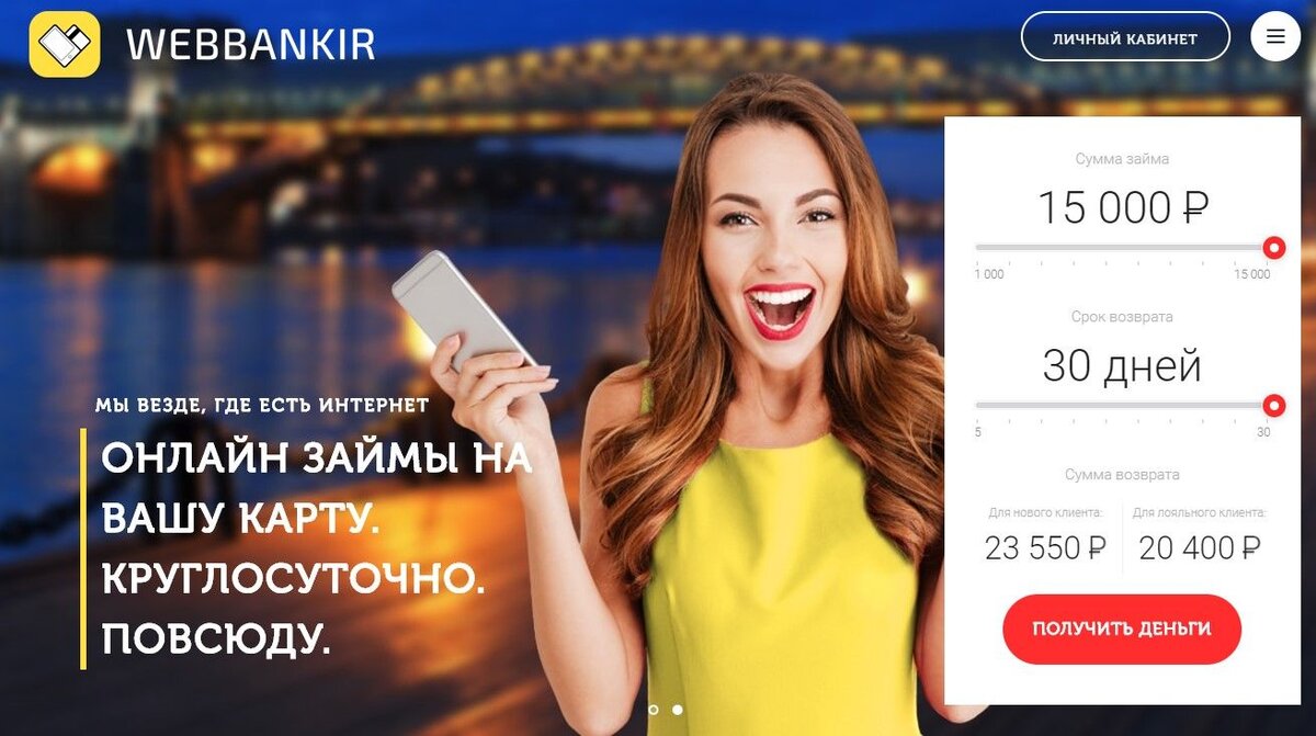 Webbankir — безконтактная доставка денег, 24/7 на любые цели!