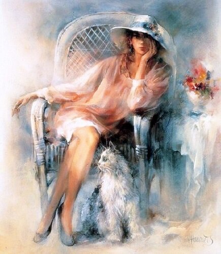Вы были, как всегда, с охраной, И что-то, во мне пытались разглядеть, И пахло чем-то летним, пряным, А мне хотелось с Вами в небо улететь. Мне в Вашем облике свободном, Виднелась давняя печаль, Хоть взгляд и не был Ваш холодным, Но вот в охрану, наняли кота. Ему, Вы верите гораздо больше, Чем сердцу, опыту, душе, Я подошёл, но что случилось, Боже, Ваш кот, моим стал протеже... Теперь с котом мы вместе дружим, И он нам в доме, верно служит!