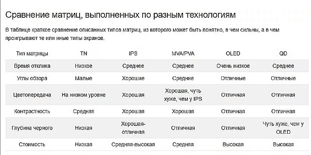 За сочность, реалистичность изображения и угол обзора, отвечает матрица.