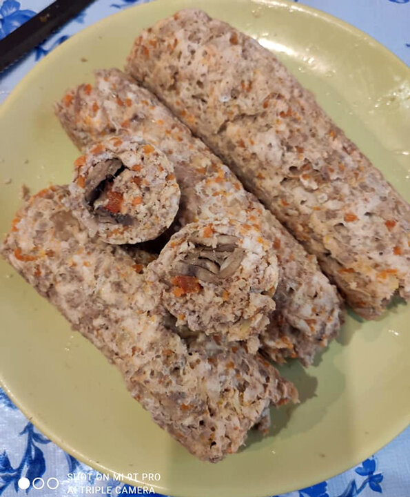 Берем куриную грудку, филе индейки, лук, морковь и делаем фарш. Солим его, перчим и добавляем яйцо.
