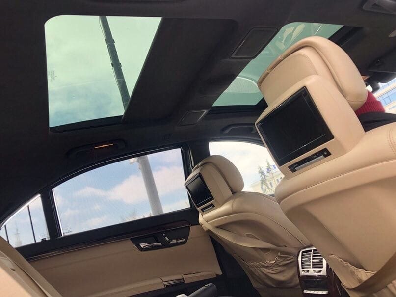 В итоге имеем: Полный привод, 388 лошадей, коробка автомат,кузов лонг, белый кожаный салон в отличном состоянии, панорама, ночное виденье, мониторы с двд для задних пассажиров, массаж на всех сиденьях можно долго перечислять что было в этой машине и что мне понравилось был предпусковой подогреватель с пультом.