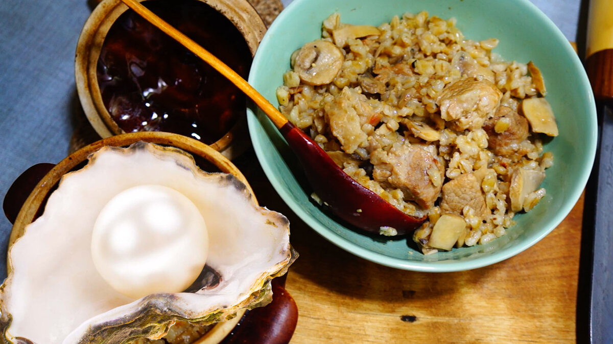 Все вместе обжарить еще 10-12 минут. Далее переложить перловку с мясом и грибами в горшочки или чугунок. Добавить кипяченой воды, чтобы она покрыла 2/3 каши. Так блюдо не подгорит и перловка еще больше распарится.