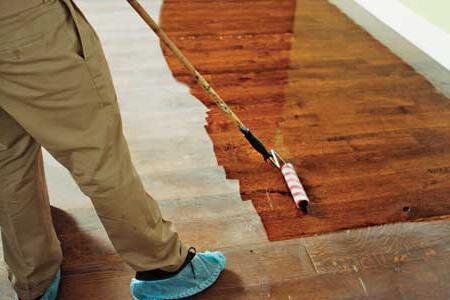 Если в комнате уложены полы из хвойных пород дерева, то перед покрытием лаком, их следует «обезжирить». Протереть растворителем или бензином.
